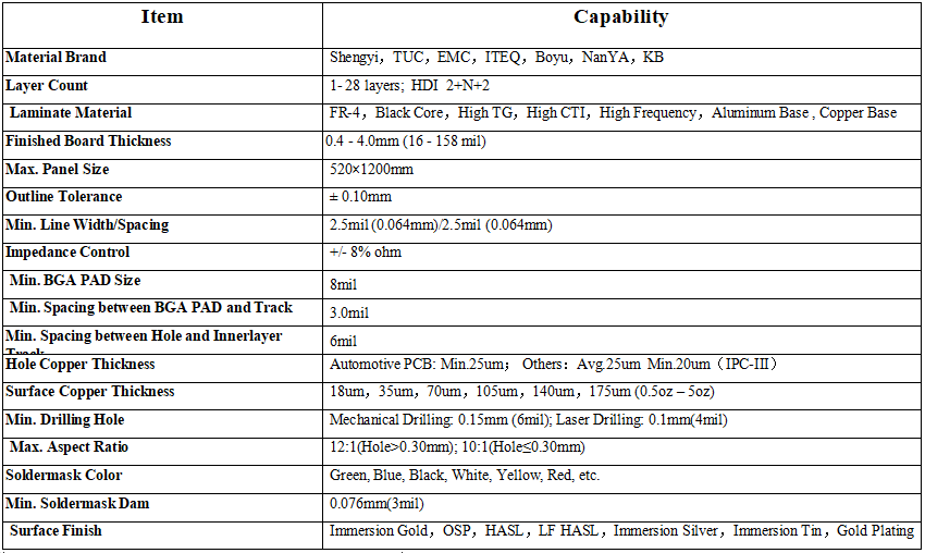 2. We’re able to meet the production demands of various materials such as metal-base materials(aluminum-base/copper-base), Mid/High TG, High-speed High-frequency, Halogen-free. And we have produced and delivered in large volume.
